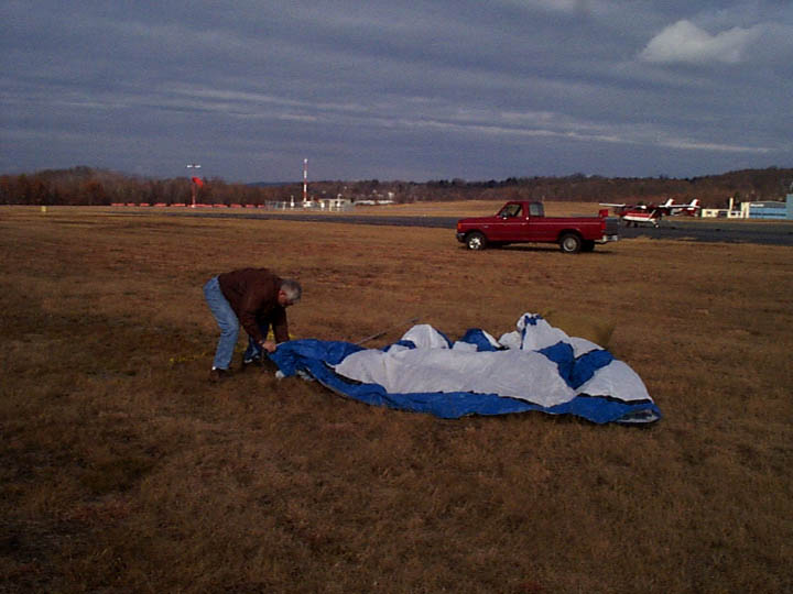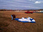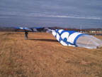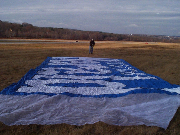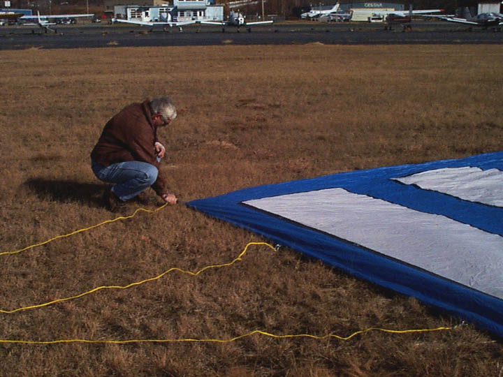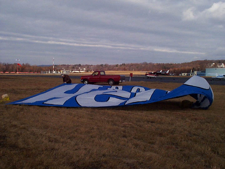 | An Aerial billboard is basically a large "FLAG" that has been designed and painted with your custom logo or message and is towed above any large-attendance outdoor event. Below is a sequence of pictures showing the deployment and pickup of a typical billboard. |
